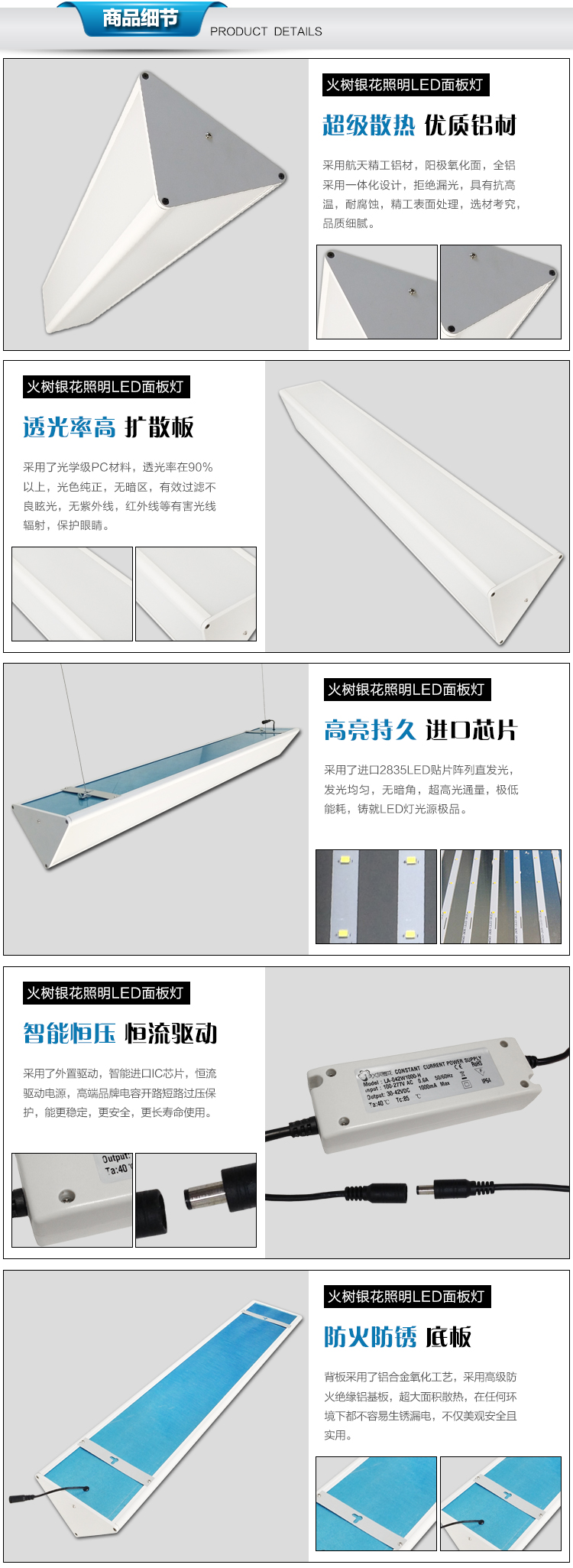 1. 火樹銀花鋁框壁厚:厚度平均1.2mm,加厚堅(jiān)固耐磨,散熱效果更佳。